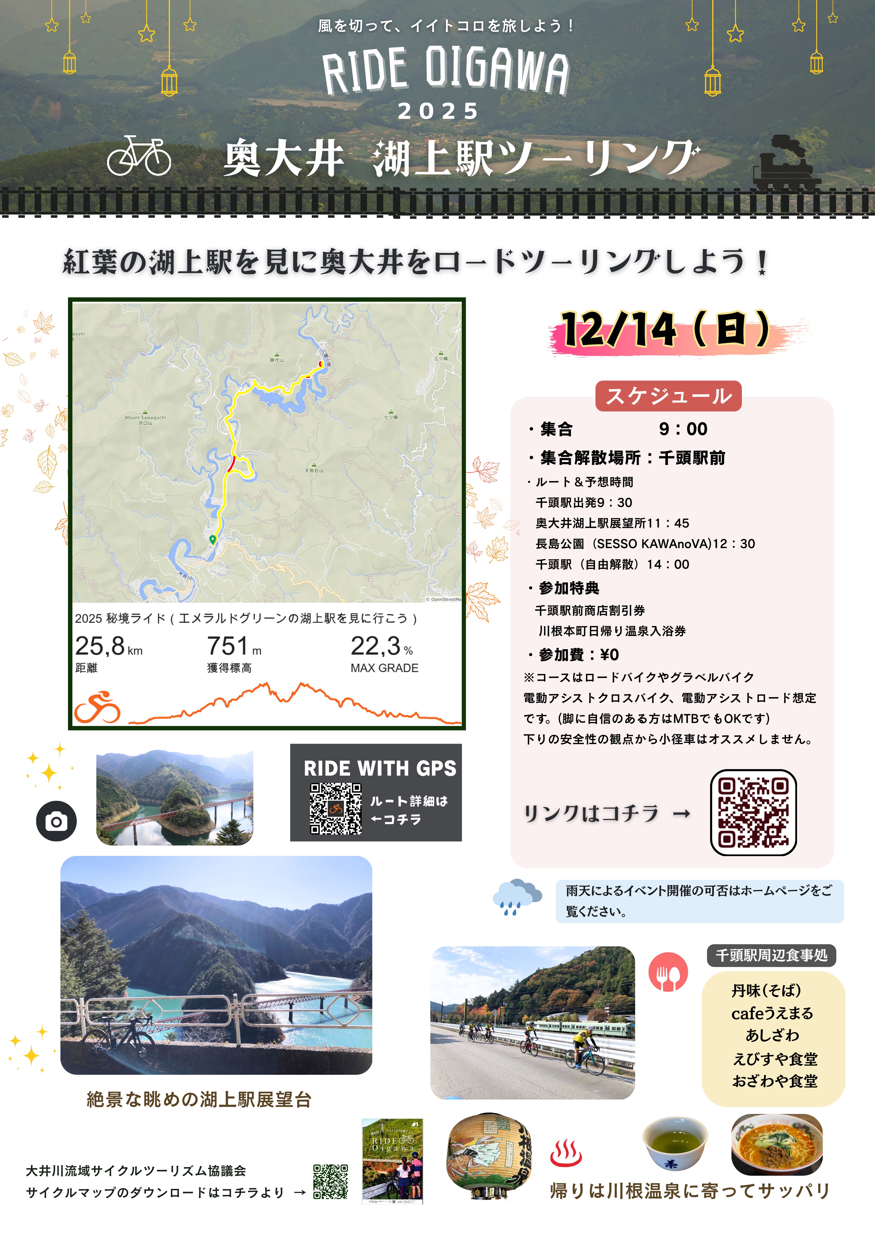 ・参加特典:千頭駅前商店割引券、川根本町日帰り温泉入浴券